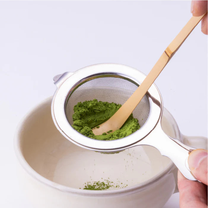 Step 1: Sift 2g (0.07 oz) of matcha (1.5 heaped tea ladles or 1 level teaspoon.)